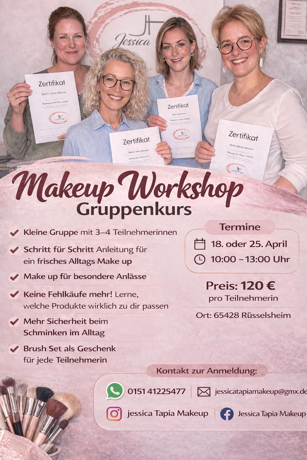 Ich hatte gestern ein Make up Workshop bei Jessica gehabt,es hat nicht nur mega Spaß gemacht sondern ich könnte für mich viele wichtige Sachen was Gesicht Pflege und Make-up angeht mit nehmen, die andere Teilnehmerinnen waren auch super nett. Ich kann jeden anderen die Jessica weiter empfehlen, sie liebt es ihre Beruf und bring die Sachen super bei! Vielen Dank noch mal Jessica <3